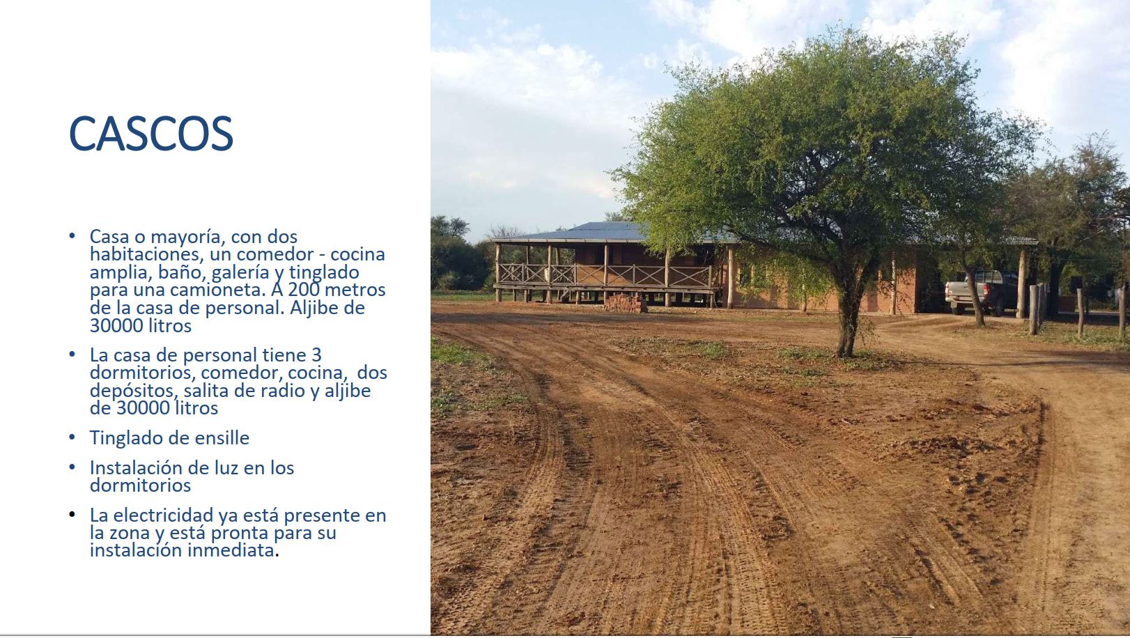 • Complete paddock with a cattle pen, scales, a 30-meter-long barn, and a loading ramp near the main house.