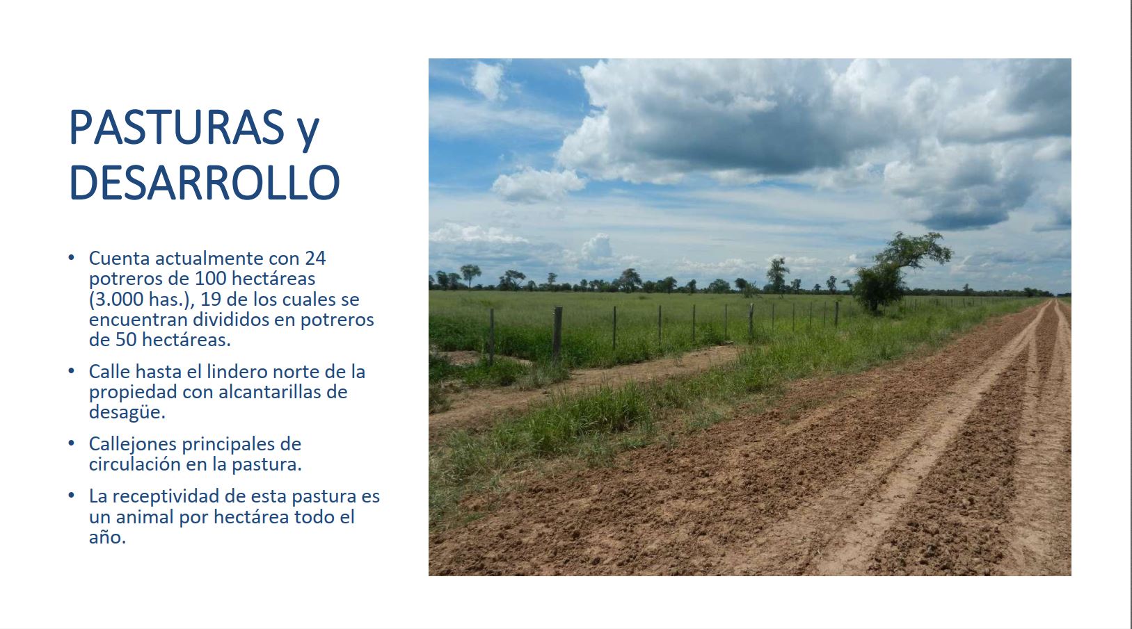 • Currently 24 paddocks of 100 hectares each (Total 3,000 hectares), 19 of which are subdivided into 50-hectare parcels.